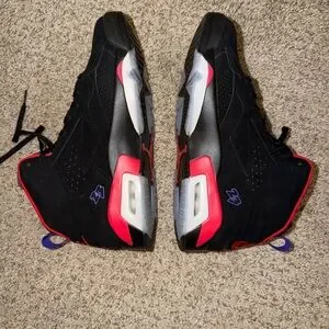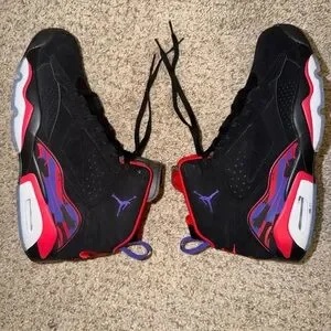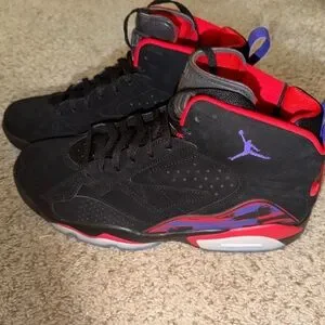 The product is a pair of Men's Size 12 Air Jordan MVP 678 Raptors Athletic Basketball Shoes. These high-top sneakers feature a solid multicolor pattern, lace-up closure, and leather upper material. With a performance activity of basketball, these Air Jordan shoes belong to the product line Air Jordan and are designed for athletic use. The model Air Jordan MVP 678 embodies a colorful theme, making them a stylish and functional choice for sports enthusiasts. Raptors Color-way