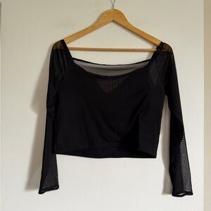 Abercrombie & Fitch Black Mesh Sleeve Cropped Long Sleeve Top size Large EUC