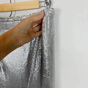The timeless Lovers and Friends Sascha Maxi Skirt in Silver transports you to a realm of elegance and grace, where every piece tells a story of chivalry and romance. With its chain metal-inspired design and alluring slit, it exudes fierce femininity.