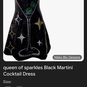 Sparkling mini dress with a martini glass motif. Features black, gold, and green sequins. Perfect for parties.
