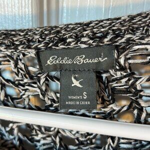 Eddie Bauer sweater in size small, loose knit, in a neutral color, material unknown. In great used condition with no fabric tag.
