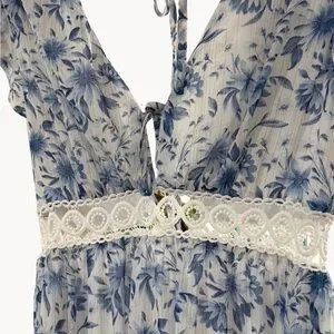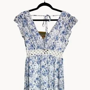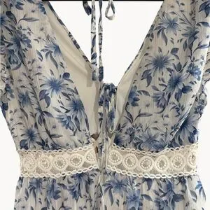 Embrace elegance with this stunning floral dress. Featuring a beautiful blue and white pattern, it's perfect for any occasion. The delicate design adds a touch of sophistication to your wardrobe. Gorgeous and romantic, this Lulus floral dress is the perfect blend of feminine charm and effortless boho vibes. Featuring a soft blue botanical print on a white background, this piece includes delicate silver threads woven throughout the fabric — subtle in photos but beautifully noticeable in person ✨.