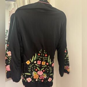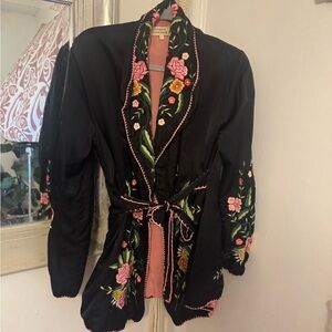 Chasing Unicorns silk smoking jacket. Size L. Worn twice. GORGEOUS! Fits best small, med or large. Measurements in photos. Freshly pressed and packaged and ready for her new home!