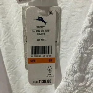 NWT Tommy Bahama Textured Terry Beach Romper in White Sz Small Fits Like Sz 6-8