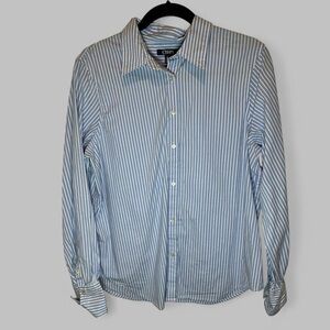 Chaps Blue & White Striped Button-Down Shirt Women's Large