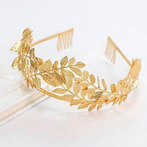 Gold Leaf Crown Laurel Wreath Headband Greek Roman Empress Costume Accessory