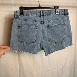 H&M Blue Jean Shorts with Frayed Hem and Mid-Thigh Length
