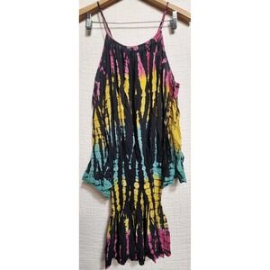 Surf Gypsy Tie Dye PlaysuitDress Off Shoulder Hippie Boho Whimsigoth Beach Sz S