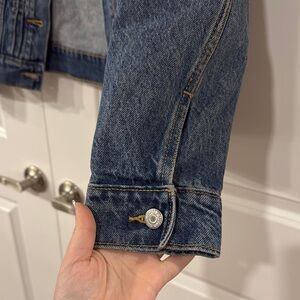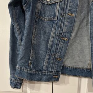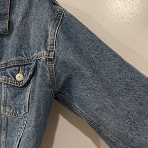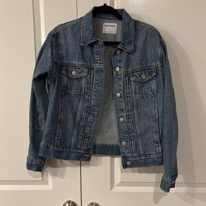 Classic denim jacket with button closure. Features two chest pockets. Perfect for casual wear.