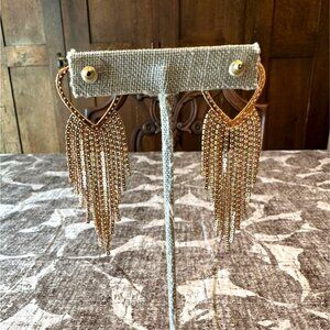 Heart-Shaped Gold-Tone Fringe Dangle Earrings With Rhinestone Accents Park Lane
