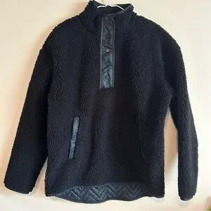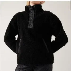 Athleta Cozy Sherpa Snap Jacket Sweatshirt M Black. $149