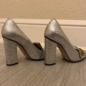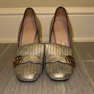 Elegant gold women's loafers featuring a stylish buckle detail. Perfect for adding a touch of sophistication to any outfit. Preowned Authentic Gucci Pumps