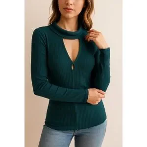 Elevated comfort defines this Free People top, a perfect addition to your stylish yet relaxed wardrobe. The unique keyhole neckline adds a touch of modern sophistication to the classic long sleeve design. The ribbed texture not only enhances the visual appeal but also provides a flattering, body-hugging fit, accentuating your silhouette with ease. With its rich teal green hue, this top brings a refreshing pop of color to any outfit, making it a versatile piece that seamlessly transitions from casual daywear to chic evening ensembles. Imagine yourself wearing it to a coffee date with friends or a casual Friday at the office.