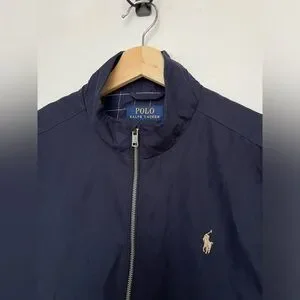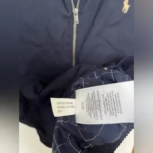 Classic navy vest by Ralph Lauren. Features a gold embroidered logo. Ideal for layering.