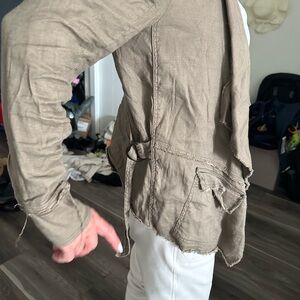 Stylish brown draped jacket with a relaxed fit. Perfect for layering.