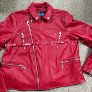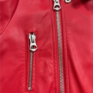 Make a statement with this vibrant red leather faux jacket. Designed for style and comfort, it's a must-have addition to your wardrobe.