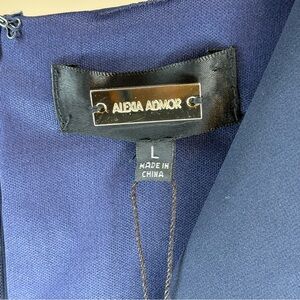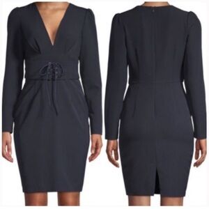 Alexia Admor Dark Navy Blue Long Sleeve V-Neck Dress Size Large NWT