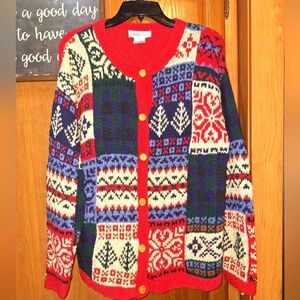 Talbots Colorful Patchwork Knit Cardigan In A Size Medium. Holiday Christmas
