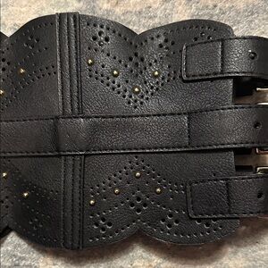 Stylish black belt with triple buckle design. Perfect for enhancing any outfit.