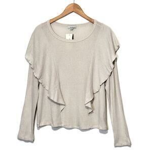 Allison Joy Evereve Nora Ruffle Top Scoop Neck Long Sleeve Ivory Cream Size L