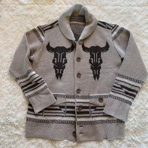 Western Bucking Bronc Rodeo Horse Cowichan Knit Traditional Button Front Cardigan