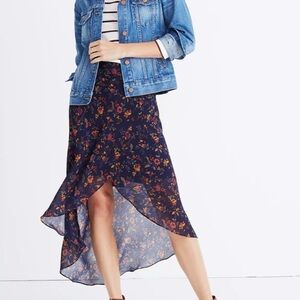 Madewell Navy Blue Floral Pull On Faux Wrap Midi Skirt Womens 10