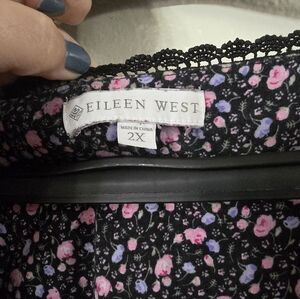 Eileen West Black Floral Nightgown 2X Cotton Modal Cottagecore