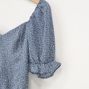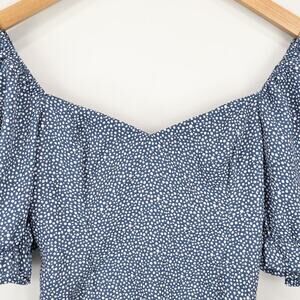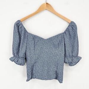 Abercrombie & Fitch Puff Sleeve Semi Cropped Babydoll Blouse Blue Dot Print XS