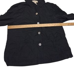 EUC linden hill Sz. S Black Long Sleeve Button Down Shirt. Machine wash cold with like colors, delicate cycle. Only non-chlorine bleach when needed. Tumble dry low. Warm iron when needed. No flaws noted.