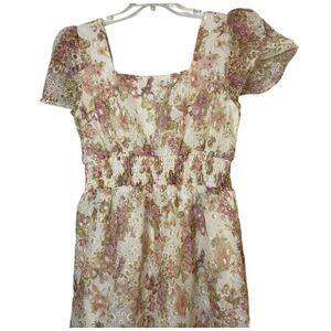 Solitaire Floral Maxi Dress Embroidered Eyelet Cottage Boho Coquette Size Large