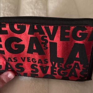 Stylish red and black pouch with Las Vegas print. Perfect for travel or daily use.