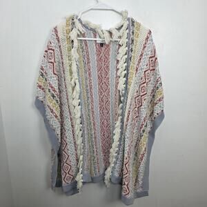 Cabi Love Carol Cream Multicolor Siesta Fringe Poncho Sweater Size Small