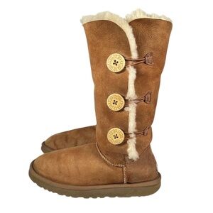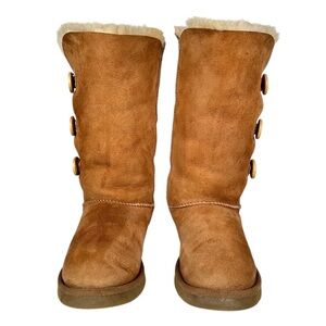 UGG Bailey Button Triplet II Chestnut Suede Sheepskin Lined Boots