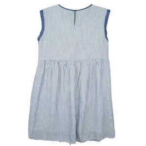 This chic Andree dress features striking stripes with floral embroidery for versatile wear.
