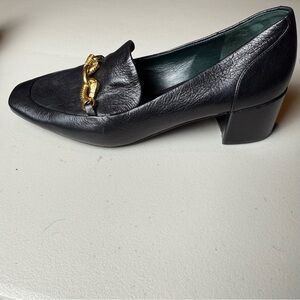 Tory Burch Jessa Black Leather Loafers with Gold Horse Motif, size 9.5, preloved