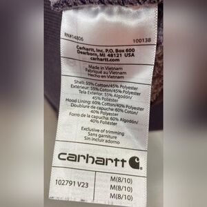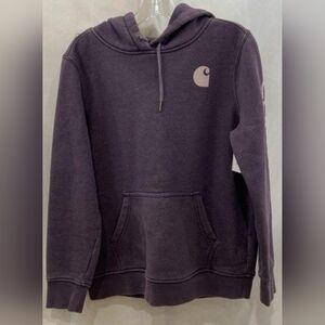 Stylish Carhartt hoodie in a rich purple color. Features a comfortable hood and logo detailing.