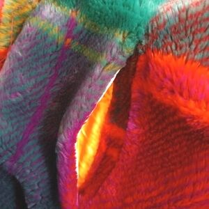 Vintage 70s Donneybrook Bright Plaid Faux Fur Shawl Collar Coat