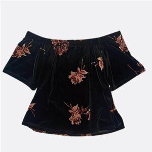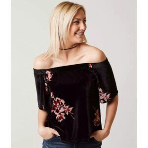 NEW BKE BOUTIQUE VELVET OFF THE SHOULDER FLORAL TOP