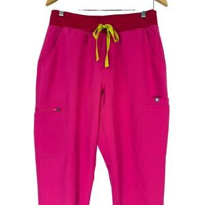 FIGS Yola Yoga Skinny Scrub Pants in Shocking Pink, size L.