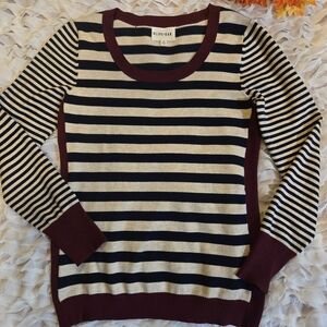 Olive & Oak Burgundy and Cream Striped Long Sleeved Sweater