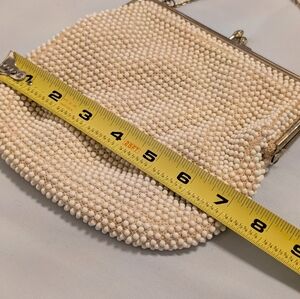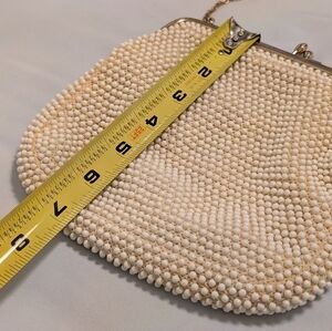 Vintage 1950s Lumured Corde-Bead Ivory Beaded Purse – Made in U.S.A.