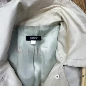 This is a rare Y2K 2000-2008 J.Crew SAMPLE trench coat, the kind used for design approval before the production run—these pieces are often better constructed and sometimes feature details that never made it to stores.