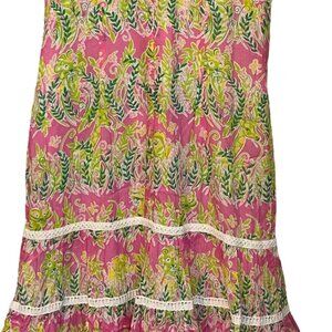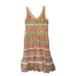 Vintage Lilly Pulitzer Shift Boho Crochet Edging Midi Dress 12 Ruffle Vacation