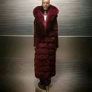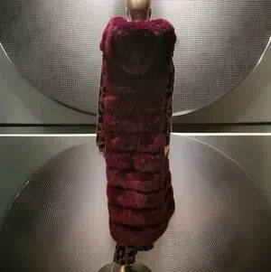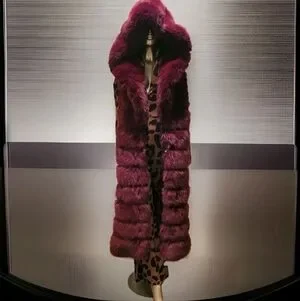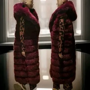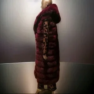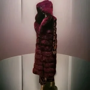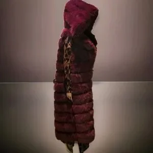 Luxurious Burgandy Faux Fur Long Hooded Vest