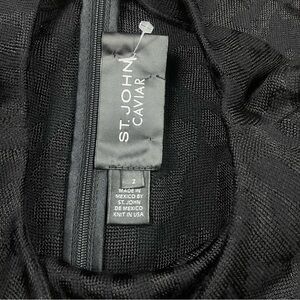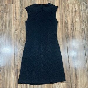 St. John Caviar Black Leopard Jaguar Print Sheath Dress Shot Sleeve Size 2