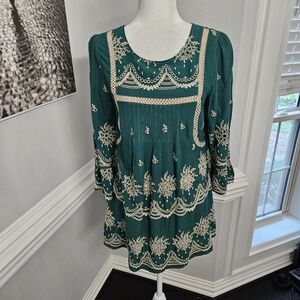 Ivy Jane green Floral Embroidered Bell Sleeve Tunic Top Blouse Dress Eyelet XS