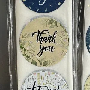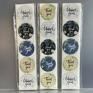 Set of floral thank you stickers in various colors. Perfect for gifts and crafts.