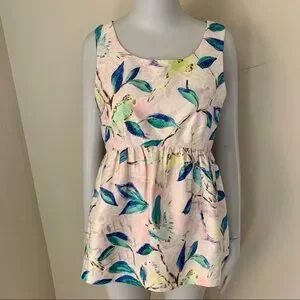 Anthropologie Leifsdottir Peplum Brocade Top Bird Pattern Metallic Sleeveless 0