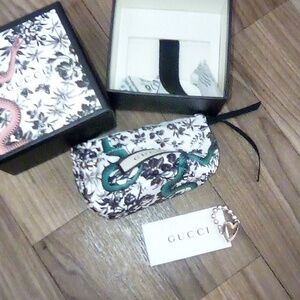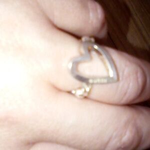 Elegant silver open heart design ring by Gucci very cute us sizeing is 6:will fit a very small amount bigger I wear a 7 & it fits my ring finger but suggest go by your own sizeing with Gucci is versatile ring will last many years, over ten years of collecting jewelry just alot that doesn't get wore comes will original dust bag box and card. offers welcome secltive trade closet if I traded jewelry with pior or regular trader of mine over the years.