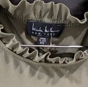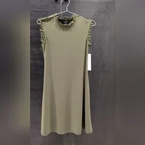Nicole Miller Olive Green Ruffle Mini Dress